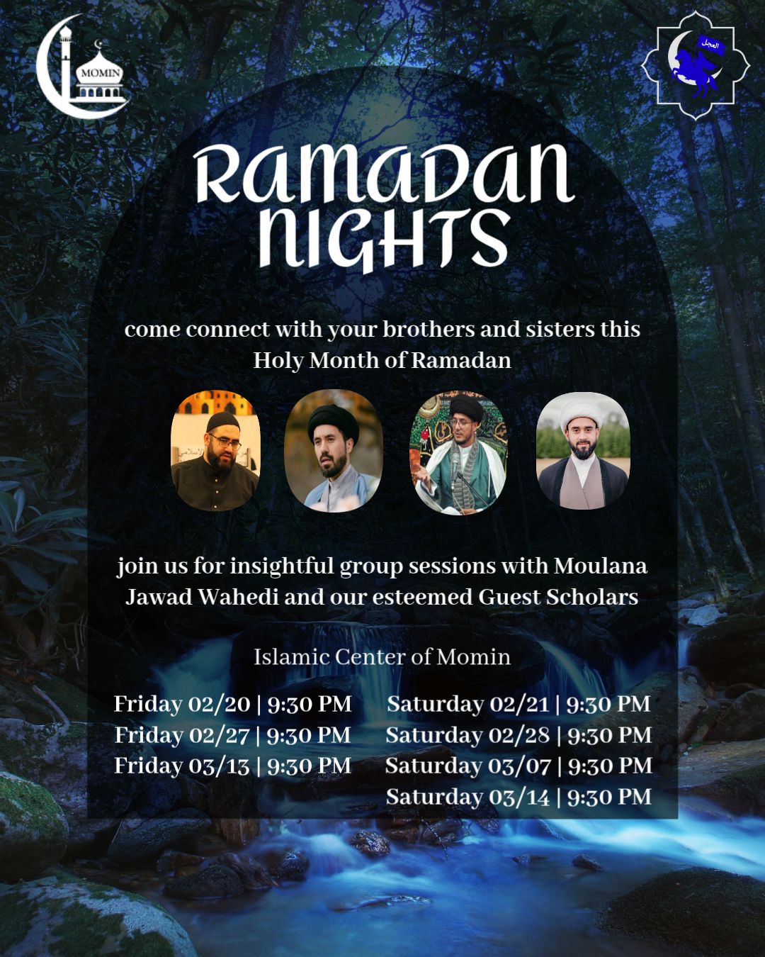 Salam Everyone! This Holy Month of Ramadan, we are excited to announce “Ramadan Nights”! Hosted by Imam Youth, Ramadan Nights will be a series of events where we have discussions with you all and our esteemed guest speakers for all youth ages 13+! We hope to see you Fridays and Saturdays after the Momin Daily Ramadan Program every week this Holy Ramadan!
